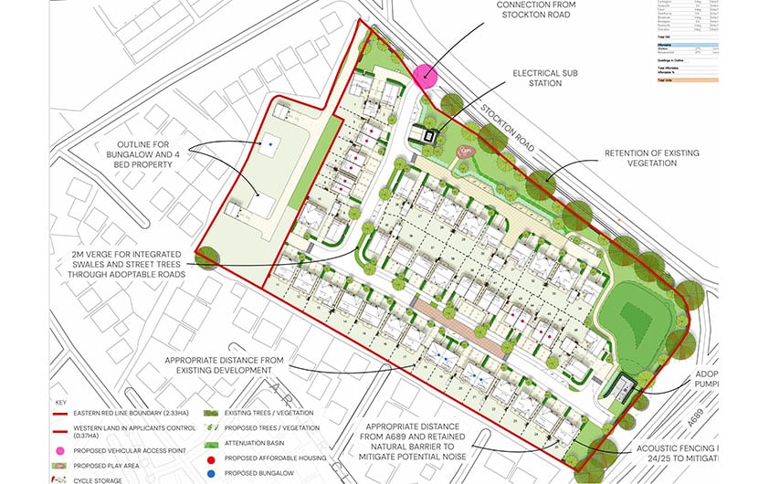 Access to the new development would be provided via a new junction onto Stockton Road, while homes would be fitted with alternative heating systems to gas to help reduce carbon emissions.